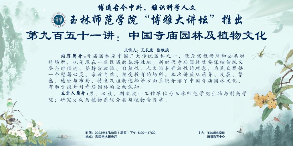 内容简介:寺庙园林是中国三大传统园林之一,既是宗教场所和公共游憩场所,也是现在一定区域的旅游胜地。新时代寺庙园林既要保持传统又要与时俱进,坚持宗教性、自然性、人文性和开放性的理念,为民众提供一个慰藉心灵、亲近自然、接受教育的场所。本次讲座从萌芽、发展、繁盛,选址与布局,特点及植物选择等方面系统介绍了中国寺庙园林文化,有助于提升对寺庙园林的全面认知。