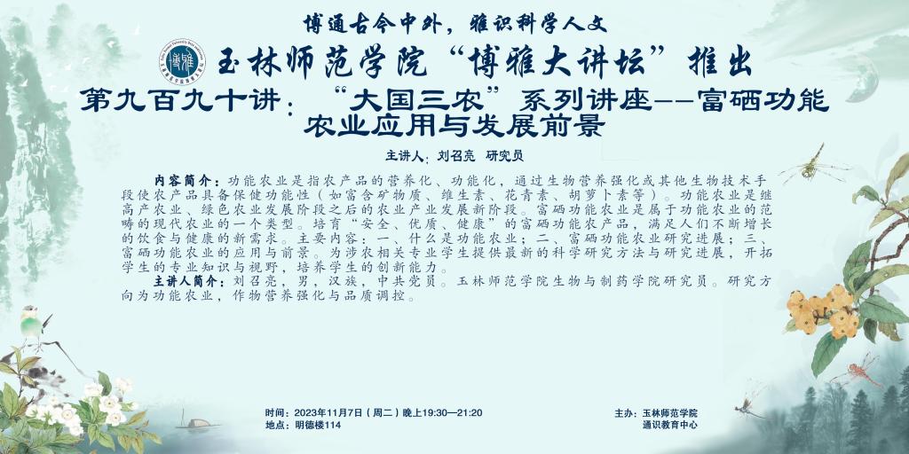 内容简介:功能农业是指农产品的营养化、功能化,通过生物营养强化或其他生物技术手段使农产品具备保健功能性(如富含矿物质、维生素、花青素、胡萝卜素等)。功能农业是继高产农业、绿色农业发展阶段之后的农业产业发展新阶段。富硒功能农业是属于功能农业的范畴的现代农业的一个类型。培育“安全、优质、健康”的富硒功能农产品,满足人们不断增长的饮食与健康的新需求。主要内容:一、什么是功能农业;二、富硒功能农业研究进展;三、富硒功能农业的应用与前景。为涉农相关专业学生提供最新的科学研究方法与进展,开拓学生的专业知识与视野,培养学生的创新能力。
