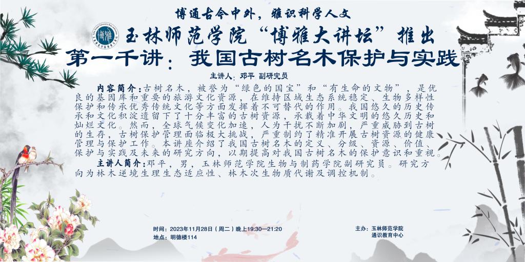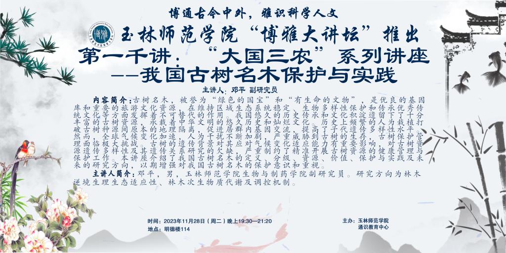 内容简介:古树名木,被誉为“绿色的国宝”和“有生命的文物”,是优良的基因库和重要的旅游文化资源,在维持区域生态系统稳定、生物多样性保护和传承优秀传统文化等方面发挥着不可替代的作用。我国悠久的历史传承和文化积淀遗留下了十分丰富的古树资料,承载着中华文明的悠久历史和灿烂文化。然而,全球气候变化加速,人为干扰不断加剧,严重威胁到古树的生存,古树保护管理面临极大挑战。古树的遗传背景对其应对气候变化适应能力有重要影响,对古树资源遗传多样性及其遗传关系研究的欠缺,严重制约了精准开展古树资源的健康管理与保护工作。本讲座介绍了我国古树名木的定义、分级、资源、价值、保护与实践及未来的研究方向,以期增强对我国古树名木的保护意识和重视。