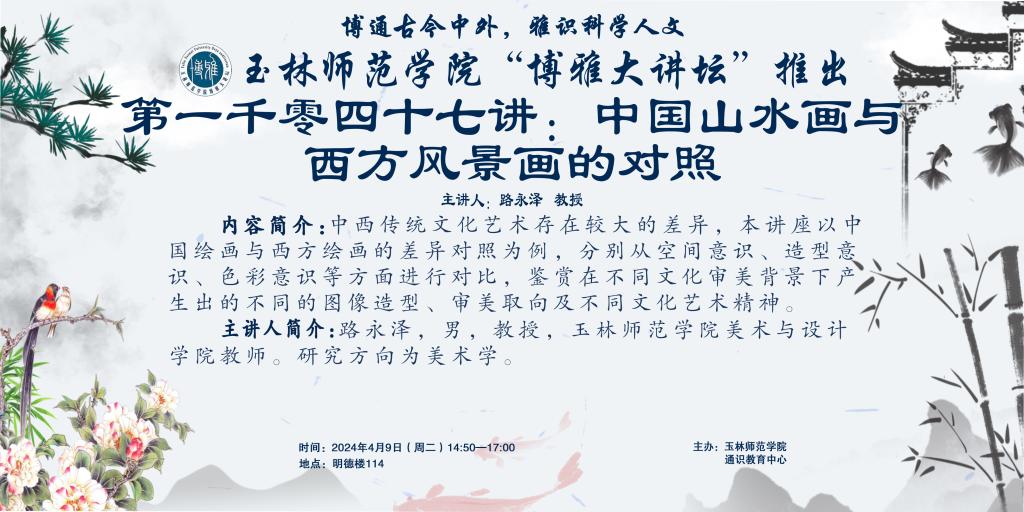内容简介:中西传统文化艺术存在较大的差异,本讲座以中国绘画与西方绘画的差异对照为例,分别从空间意识、造型意识、色彩意识等方面进行对比,鉴赏在不同文化审美背景下产生出的不同的图像造型、审美取向及不同文化艺术精神。