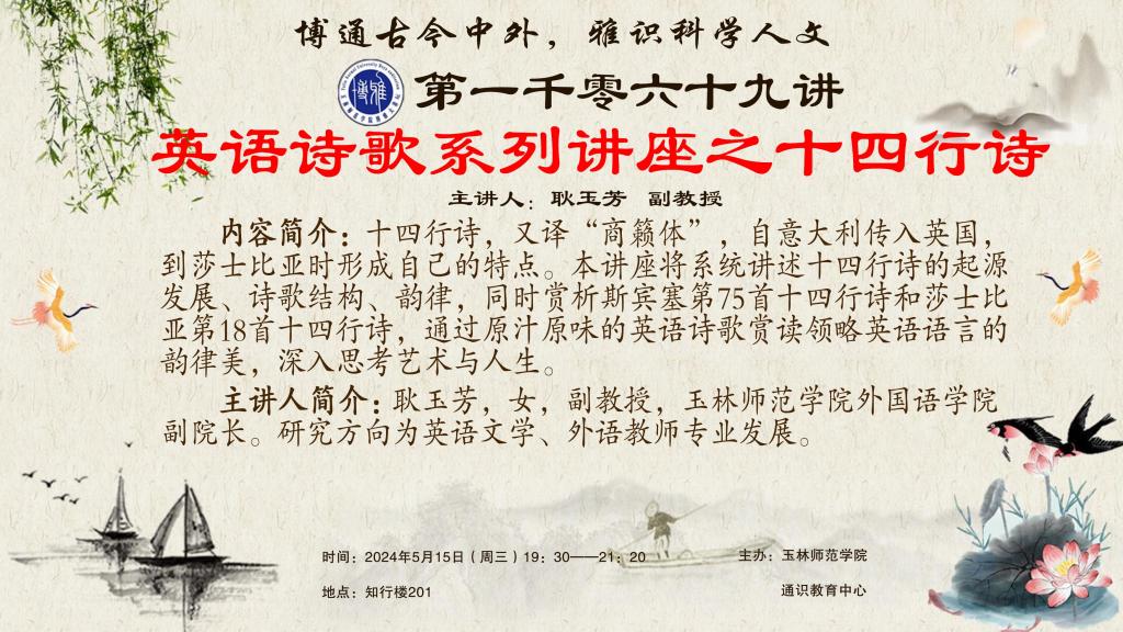 预告:【博雅大讲坛】1069期——英语诗歌系列讲座之十四行诗