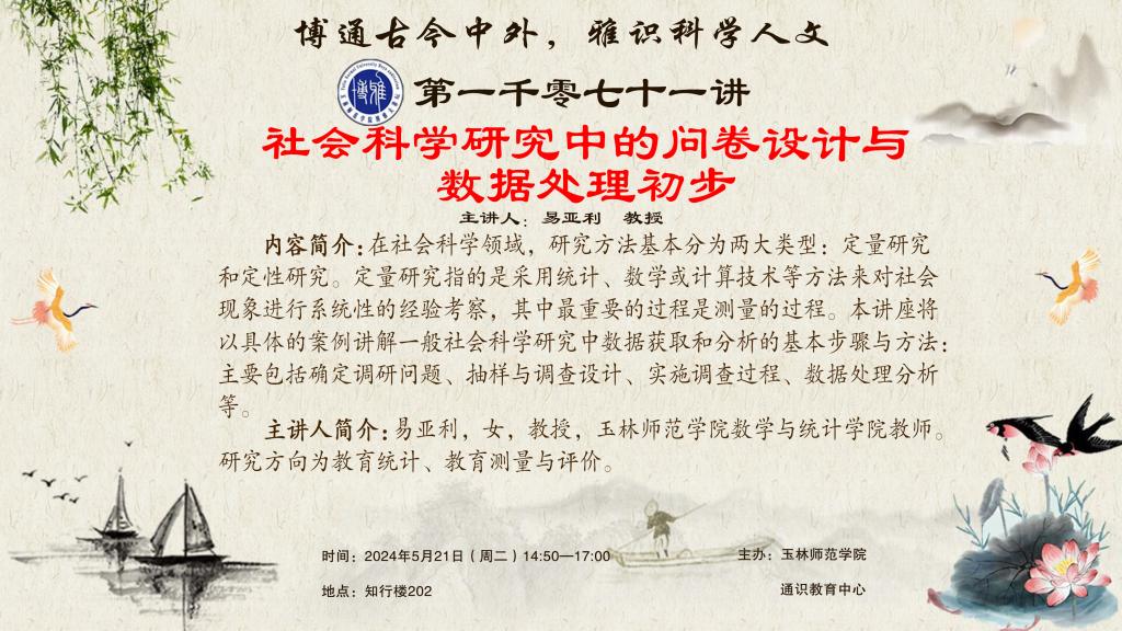内容简介:在社会科学领域,研究方法基本分为两大类型:定量研究和定性研究。定量研究指的是采用统计、数学或计算技术等方法来对社会现象进行系统性的经验考察,其中最重要的过程是测量的过程。本讲座将以具体的案例讲解一般社会科学研究中数据获取和分析的基本步骤与方法:主要包括确定调研问题、抽样与调查设计、实施调查过程、数据处理分析等。