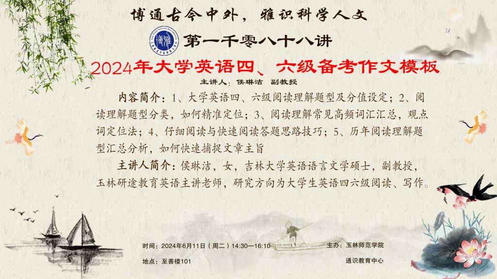 预告:【博雅大讲坛】1088期——2024年大学英语四、六级备考作文模板