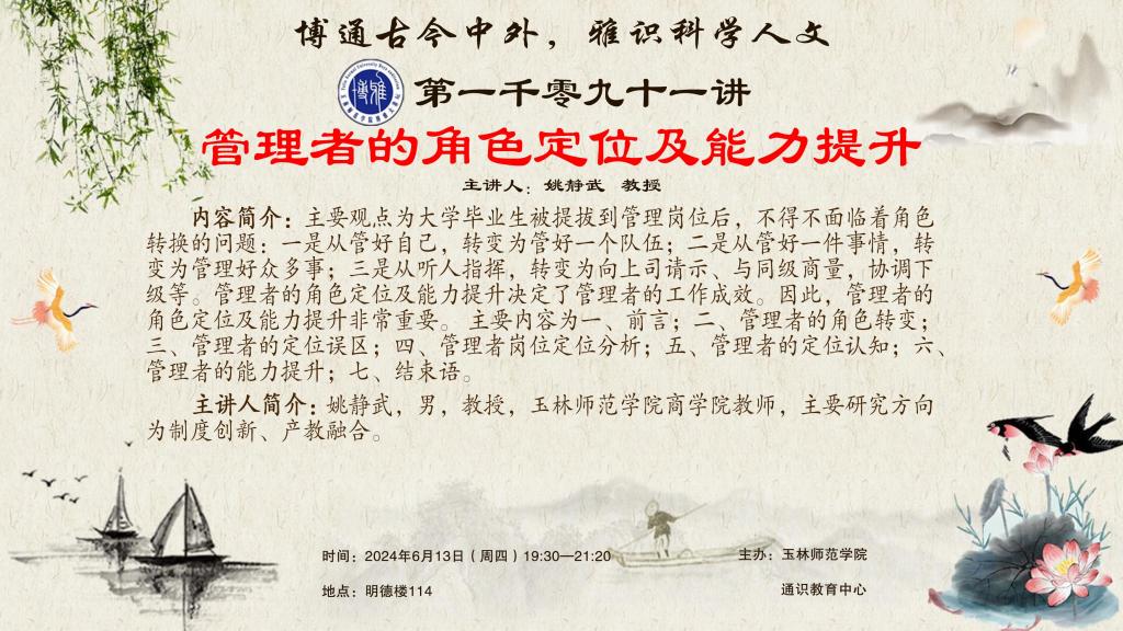 预告:【博雅大讲坛】1091期——管理者的角色定位及能力提升