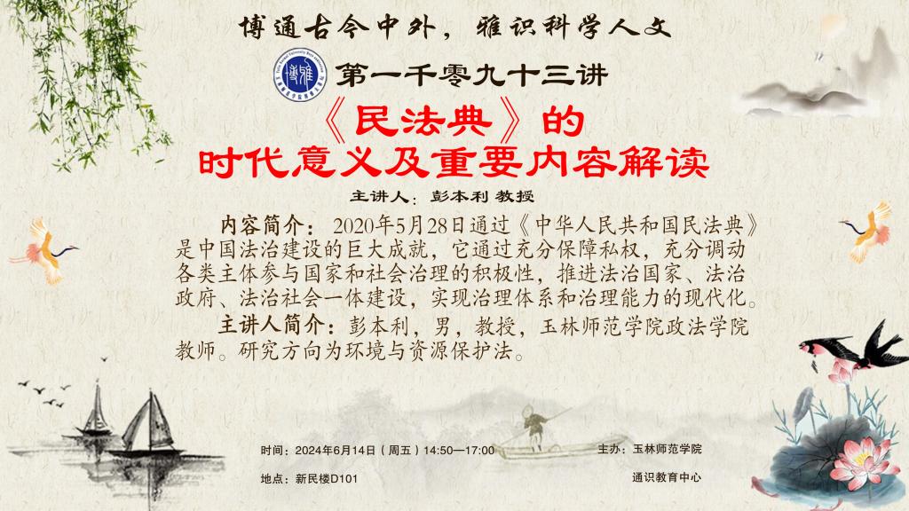 预告:【博雅大讲坛】1093期——《民法典》的时代意义及重要内容解读