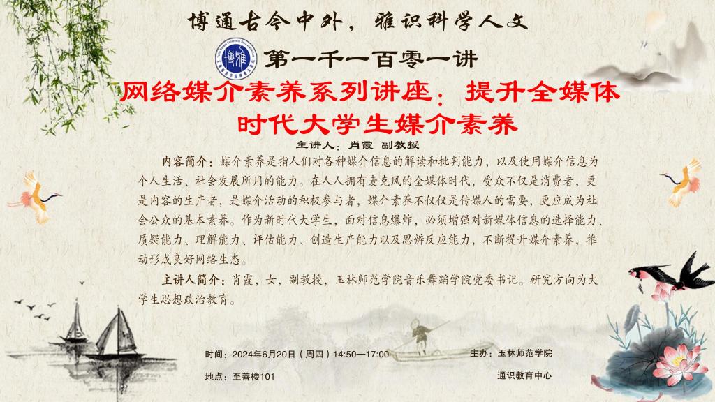 预告:【博雅大讲坛】1101期——网络媒介素养系列讲座:提升全媒体时代大学生媒介素养