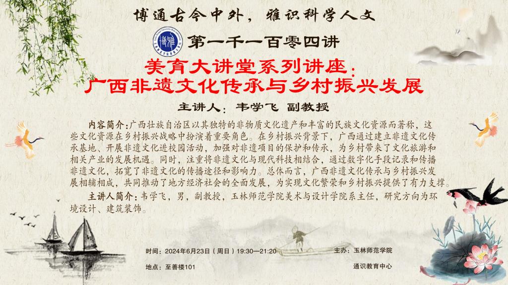 预告:【博雅大讲坛】1104期——广西非遗文化传承与乡村振兴发展