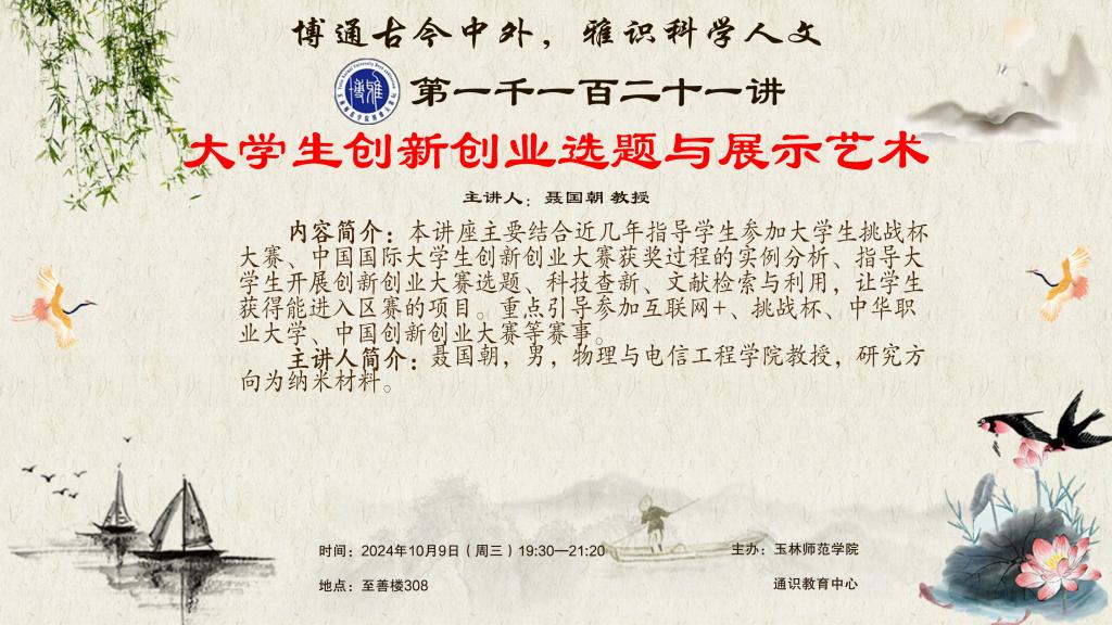 预告:【博雅大讲坛】1121期——大学生创新创业选题与展示艺术