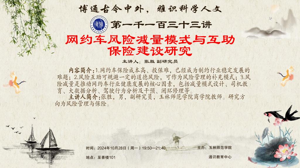 预告:【博雅大讲坛】1133期——网约车风险减量模式与互助保险建设研究