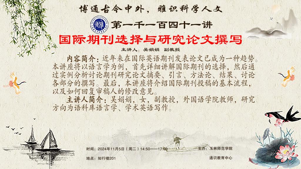 内容简介:近年来在国际英语期刊发表论文已成为一种趋势。本讲座将以语言学为例,首先详细讲解国际期刊的选择,然后通过实例分析讨论期刊研究论文摘要、引言、方法论、结果、讨论各部分的撰写。最后,本讲座将介绍国际期刊投稿的基本流程,以及如何回复审稿人的修改意见。