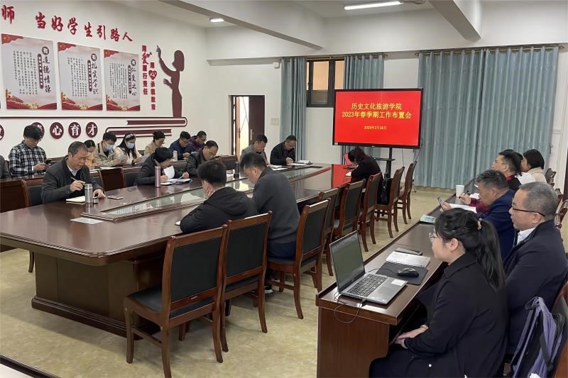 2月26日上午,历史文化旅游学院在我校东校区至善楼509会议室召开2023年春季期开学工作布置会。该院领导班子成员,全体教职工参加本次会议,会议由党委书记曾凡贞主持。