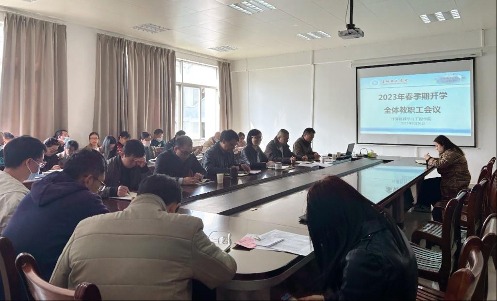 2月26日,计算机科学与工程学院在我校东校区厚德楼2-401会议室召开2023年春季期开学全体教职工大会。该院领导班子及全体教职工参加会议。会议由该院党委书记方琨主持。