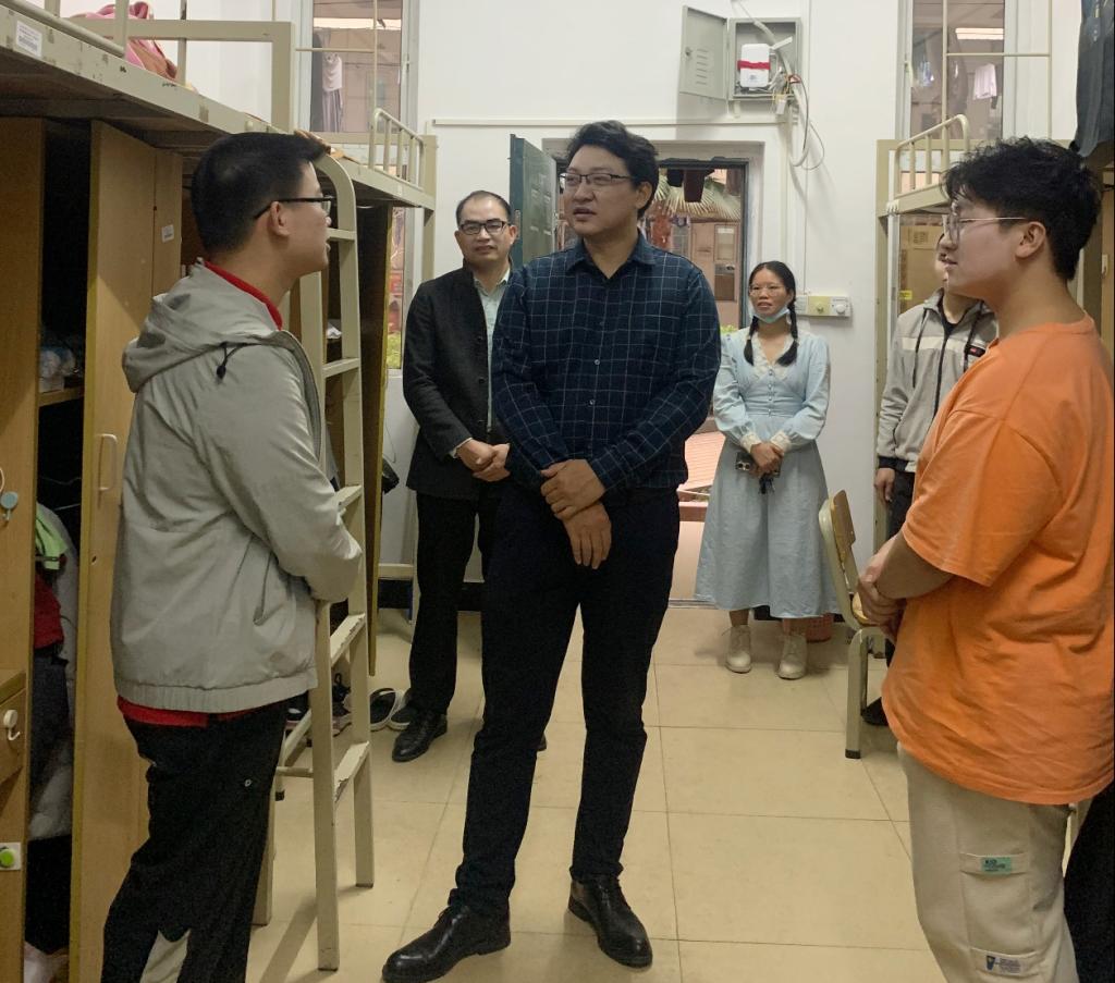 在走访过程中,方琨一行与学生们亲切交谈,并叮嘱学生们在新的学期要尽快调整作息,准备好开启新学期的学习,以积极向上的姿态,投入到新学期的学习和生活中来。领导教师们主动了解学生近期的生活状况,亲切地向学生们询问考研复习、实习就业、论文撰写等方面的情况,并耐心地给予指导与建议,鼓励他们要放松心态,全力以赴。