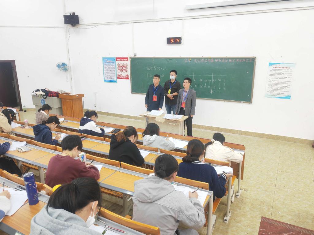 为进一步加强期末考试组织管理和考风考纪建设,营造优良学风,着力教育引导学生诚信应考,3月7日,文学与传媒学院党委书记邱冠、院长肖国栋一行深入考场开展巡考工作。