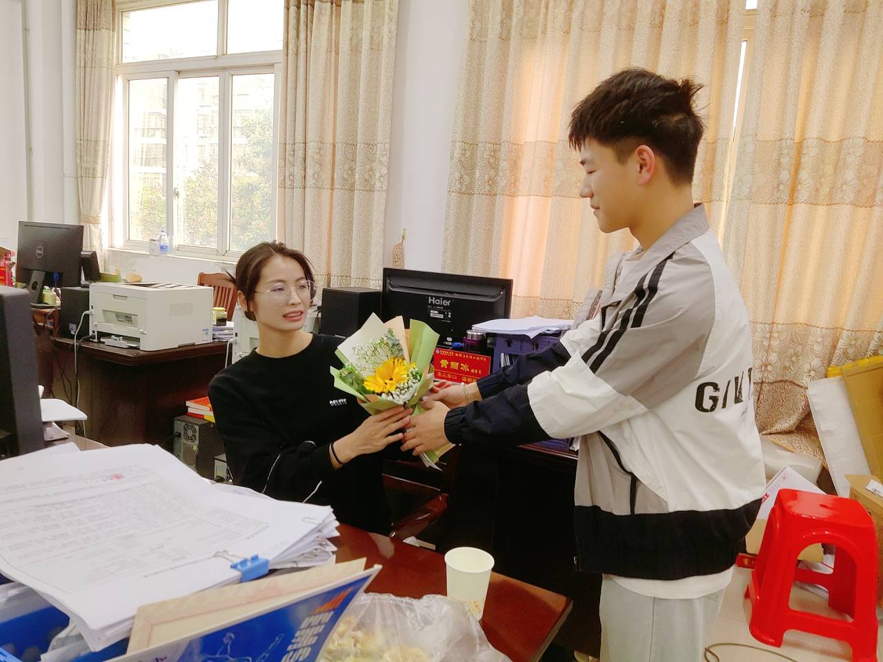 学生工作部(处)组织学生干部向在校女辅导员老师送上向日葵花束,向日葵寓意着积极向上、阳光、忠诚、热烈、光明、沉默的爱,犹如我校辅导员们一般积极向上,乐于奉献,默默守护学生。老师们收到鲜花后,喜笑颜开,纷纷表示将以饱满的热情投入到工作中,立足本职爱岗敬业,为我校学生教育管理服务工作做贡献。