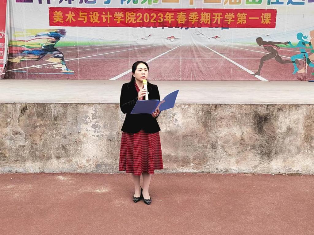 为了加强校园精神文明精神,深化大学生爱国主义教育,3月13日上午,美术与设计学院在我校东区田径场举行2023 年春季期升国旗仪式及“开学第一课”,该院党委书记黄培英、副书记严耀燕,辅导员和班主任代表以及该院全体在校学生参加。
