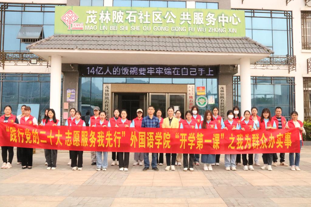 为深入学习贯彻党的二十大精神,激励学生投身实践,绽放青春之花,更好地担任起新时代高校学子的责任,3月12日,外国语学院团委组织学生走进玉林市玉州区陂石社区开展“开学第一课”之我为群众办实事系列活动。