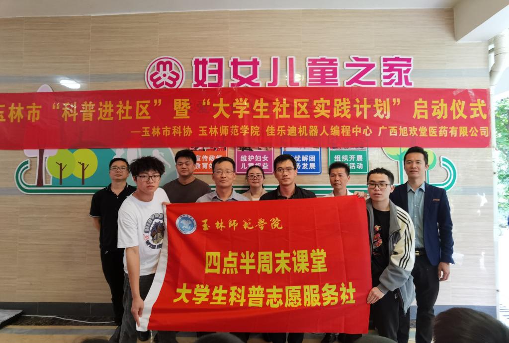 为深入学习贯彻党的二十大精神,积极落实《全民科学素质行动规划纲要》。3月12日,物理与电信工程学院联合玉林市科技协会、佳乐迪机器人编程中心以及广西旭欢堂医药有限公司开展2023年 “四点半周末课堂”科普进社区大学生志愿服务活动,并在江滨社区乾隆苑举办启动仪式。