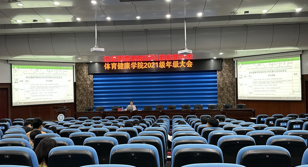近日,为进一步做好我学生工作,促进学风建设,体育健康学院创新性地以各年级大会的形式开展2023年春季期“开学第一次主题班会”,党委副书记江俊及各年级辅导员参加会议。