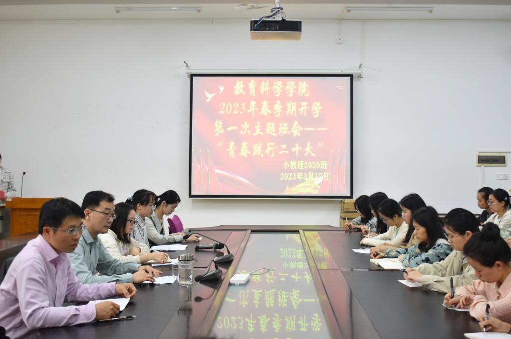 为深入学习贯彻宣传党的二十大精神,近日,教育科学学院领导班子深入班级开展2023年春季期“开学第一次”主题班会。本次班会在完美(中国)东、西校区教室召开,辅导员、班主任以及全体学生参加班会。