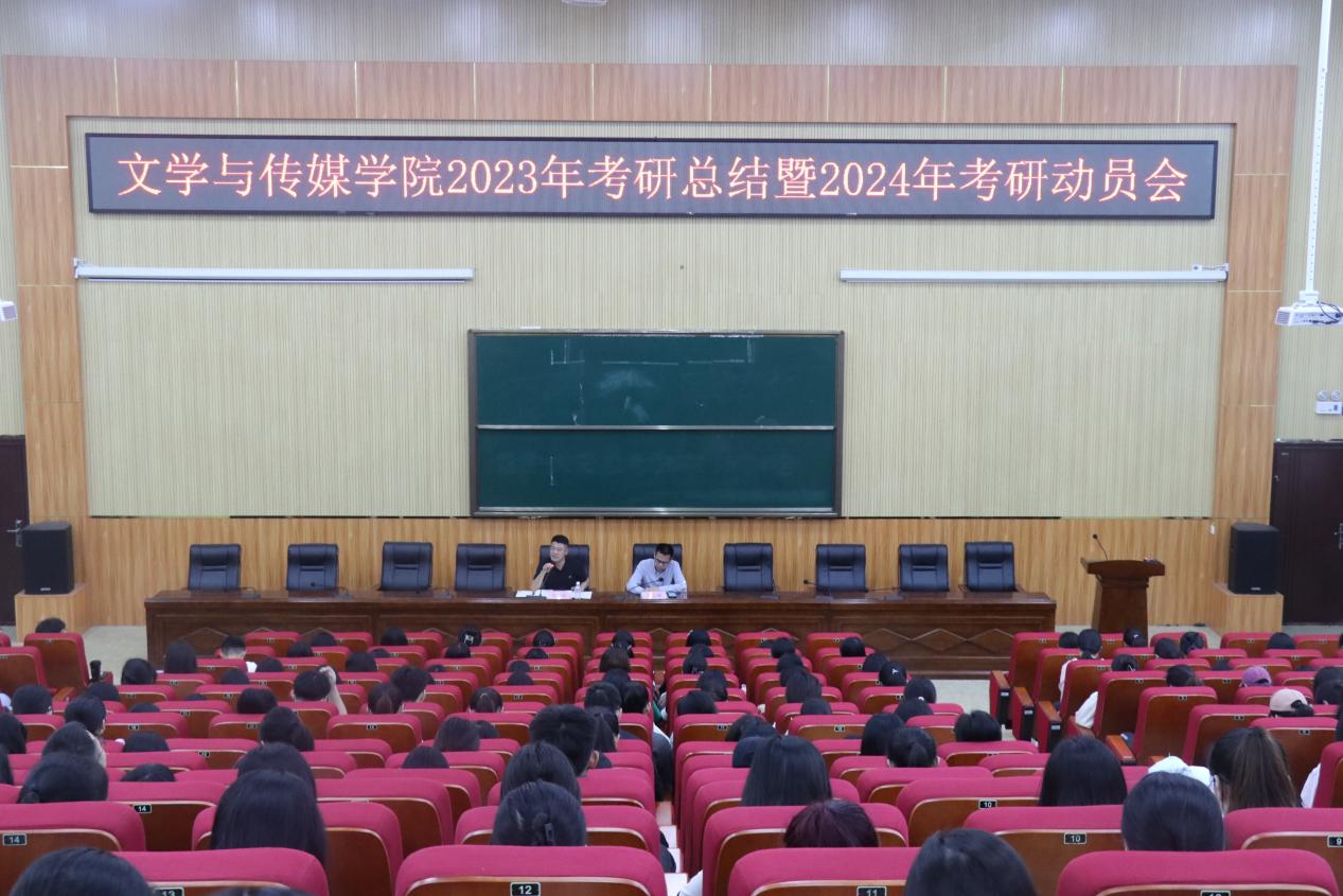 为全面总结文学与传媒学院2023届毕业生考研情况,做好2024年考研工作,进一步提高2020级学生的考研积极性,文学与传媒学院于3月21日下午在我校东校区明德楼113教室召开2023年考研总结暨2024年考研动员大会。本次动员会由该院院长肖国栋主讲,副院长郑立峰主持,2020级全体学生参加。