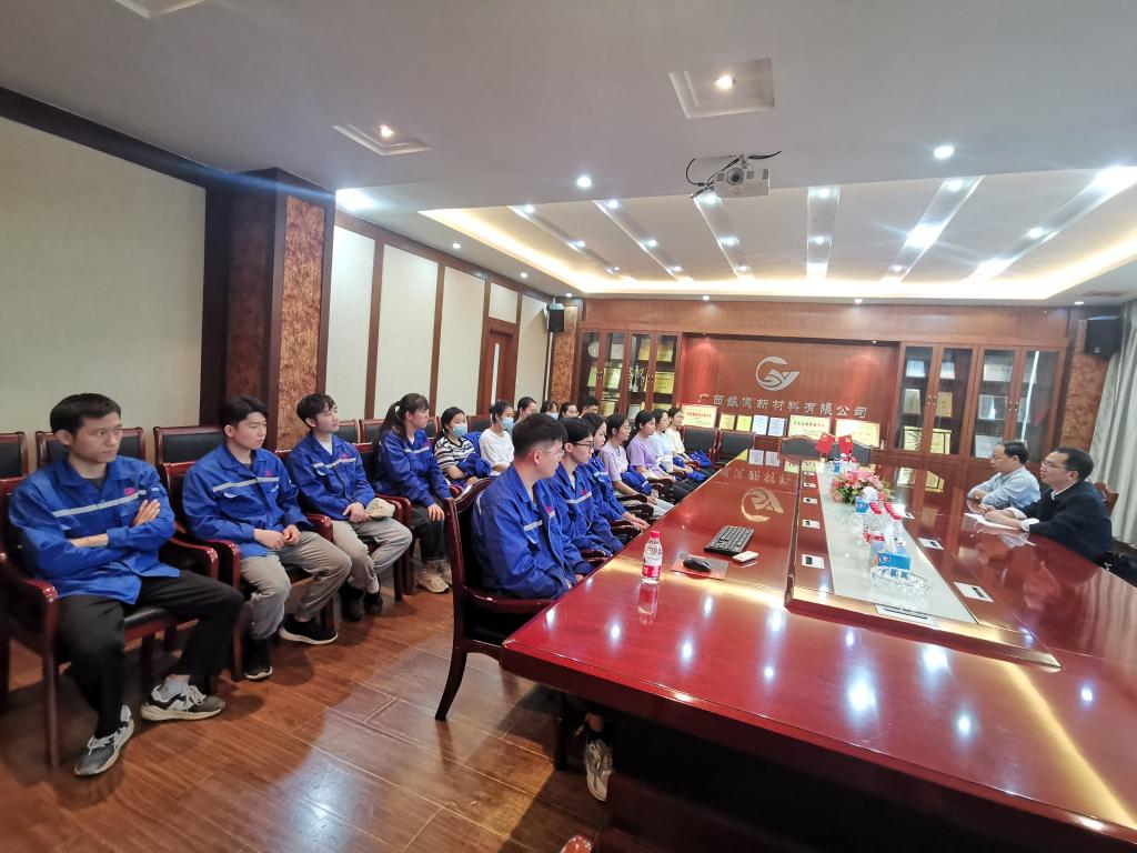 章表明一行先后来到广西银亿新材料有限公司、广西玉翔检测技术有限公司等,了解学生实习情况。会上,章表明引导学生们围绕乡村振兴与产业发展、企业发展和个人价值实现、职业发展路径等展开交流讨论,并鼓励学生们发扬奋斗精神,脚踏实地,爱岗敬业,刻苦钻研,精益求精,在生产一线练就过硬本领,在实践中提升综合素质,与企业共成长,在服务地方产业发展中实现自我价值。