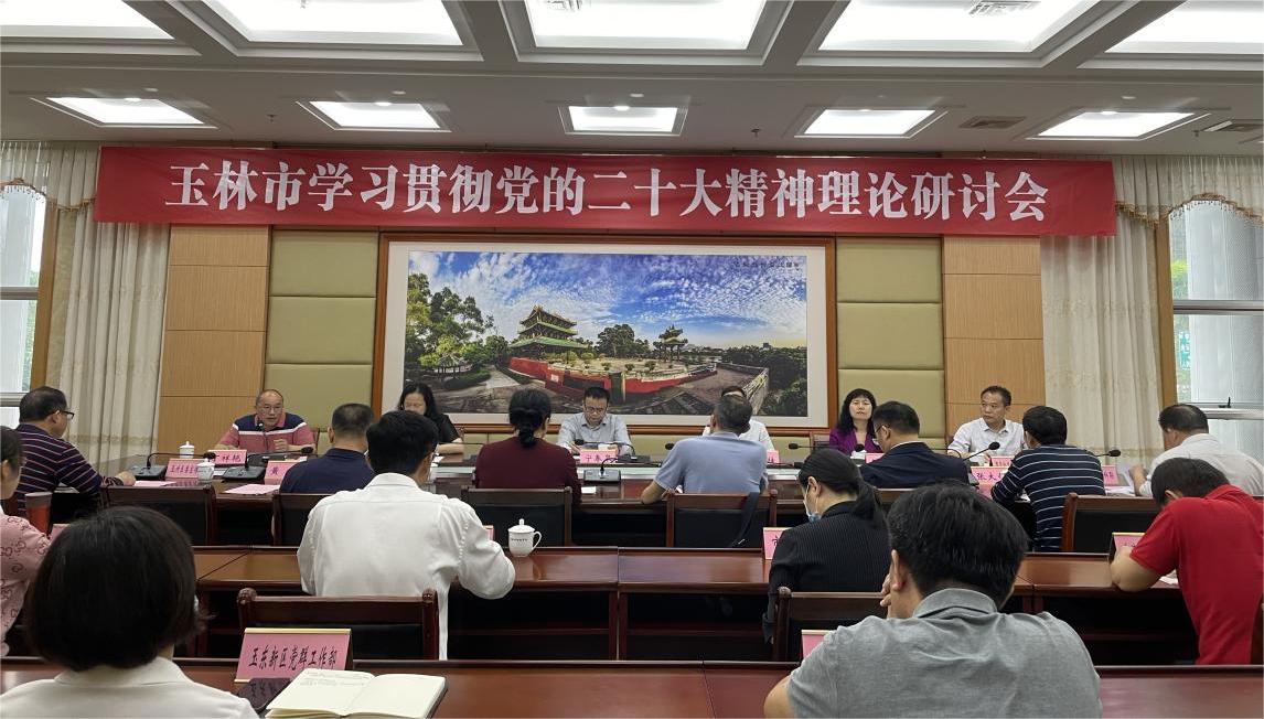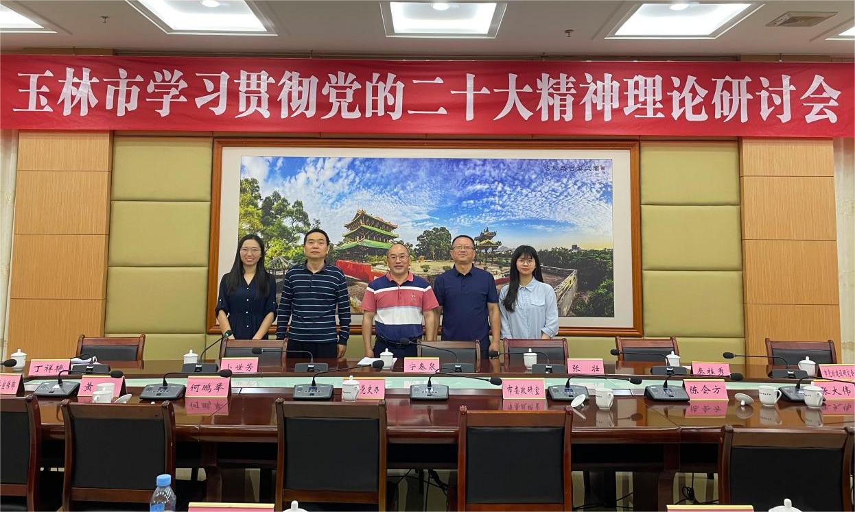3月24日上午,玉林市学习贯彻党的二十大精神理论研讨会在玉林市文化艺术中心召开。玉林市委政研室、市委党史办、市社科联、市委党校、广西医科大学等部门的专家代表,玉林市各县(市、区)社科联主要负责人,我校马克思主义学院丁祥艳教授及部分教师代表参加会议。会议由玉林市社科联主席卜世芳同志主持,市委宣传部常务副部长宁春泉同志作总结发言。