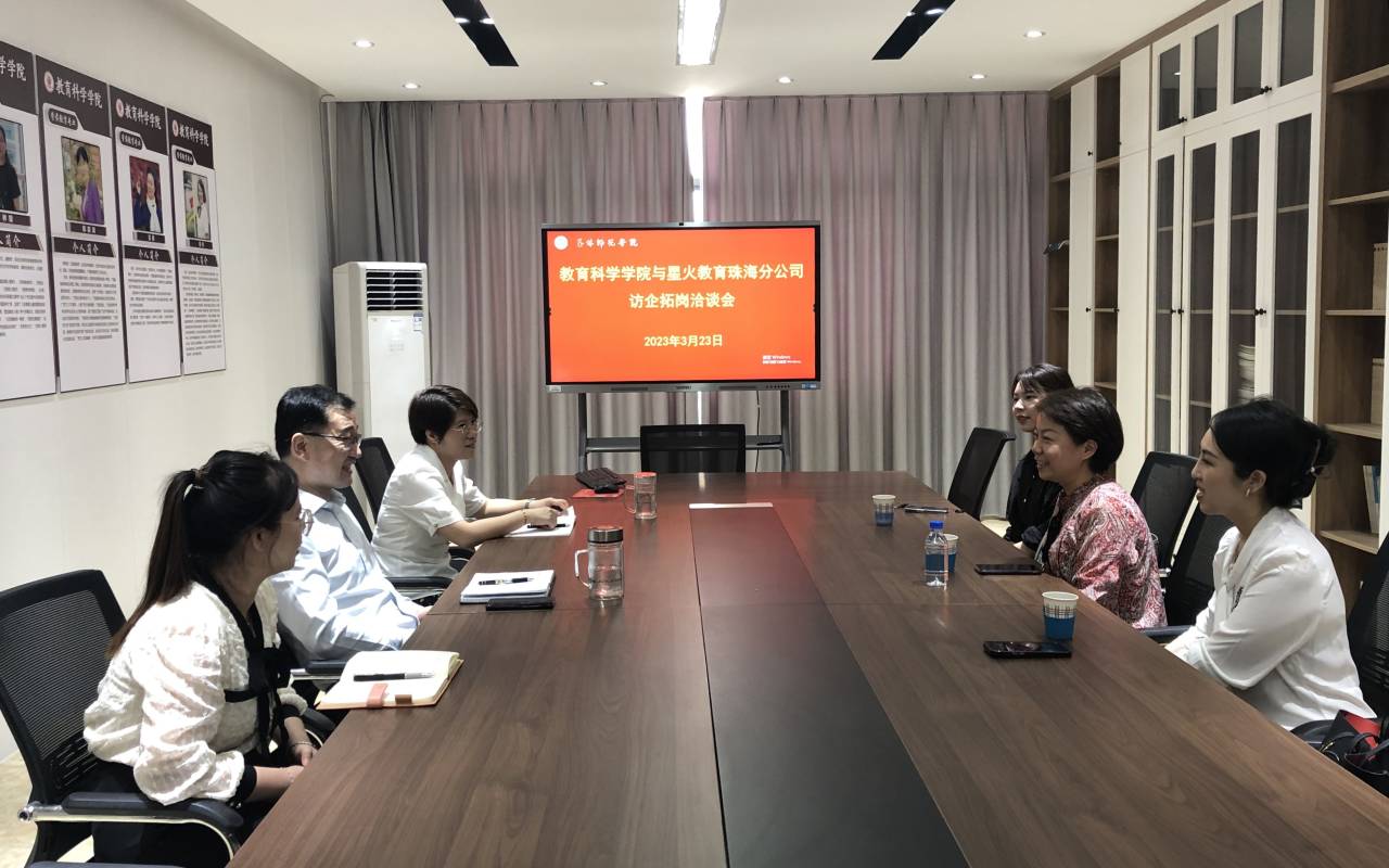 3月23日,教育科学学院与星火教育珠海分公司于我校东校区明德楼408会议室召开“访企拓岗”恰谈会,该院党委书记崔海波,党委副书记李尚芳,教师代表以及星火教育珠海分公司代表参加此次洽谈会。