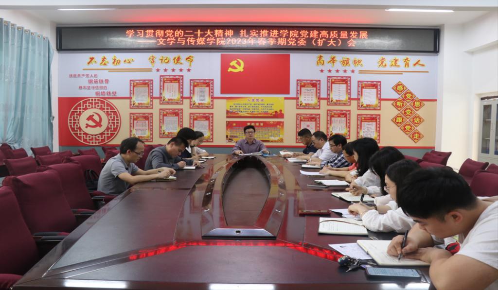 3月23日上午,文学与传媒学院于我校东校区至善楼206党建活动中心召开2023年春季期党委(扩大)会。学院领导班子、党委委员、各党支部书记、副书记参加会议。会议由学院党委书记邱冠主持。