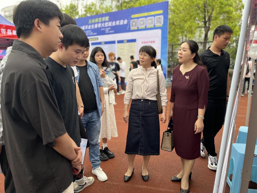 双选会现场,黄培英与用人单位进行亲切交流,深入解用人单位需求、招聘岗位和毕业生的就业意向等情况,并积极向就业单位推荐该院毕业生。同时,黄培英亲切地为询问毕业生的求职意向和应聘情况,鼓励他们树立正确的择业观,尽早做好职业规划,积极应聘,把握好就业机会,先就业再择业,并为毕业生在求职面试过程中存在的问题进行答疑解惑。此外,该院还要求低年级的学生也一同前往此次就业双选会现场,让他们好好利用这次机会提前感受就业的压力,为今后的学习、就业树立更明确的目标。