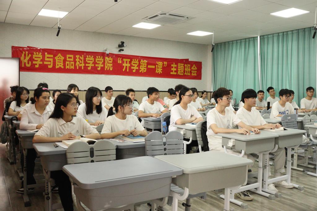 “开学第一次主题班会”活动是化学与食品科学学院“开学第一课”教育引导活动的重要内容,更是深化“化育”学生成长指导服务体系建设的重要抓手。此次主题班会是一次深刻的专题党课,是一堂生动的思政课,是深入落实“我为师生办实事”的实践课。据悉,此次主题班会邀请校院领导10余人次,宣传报道10余篇,充分发挥主题班会的育人功能,切实加强大学生思想政治教育,激励广大学生厚植家国情怀,提高班集体凝聚力,深化“三全育人”体系建设,着力推动“时代新人铸魂工程”落地落实。