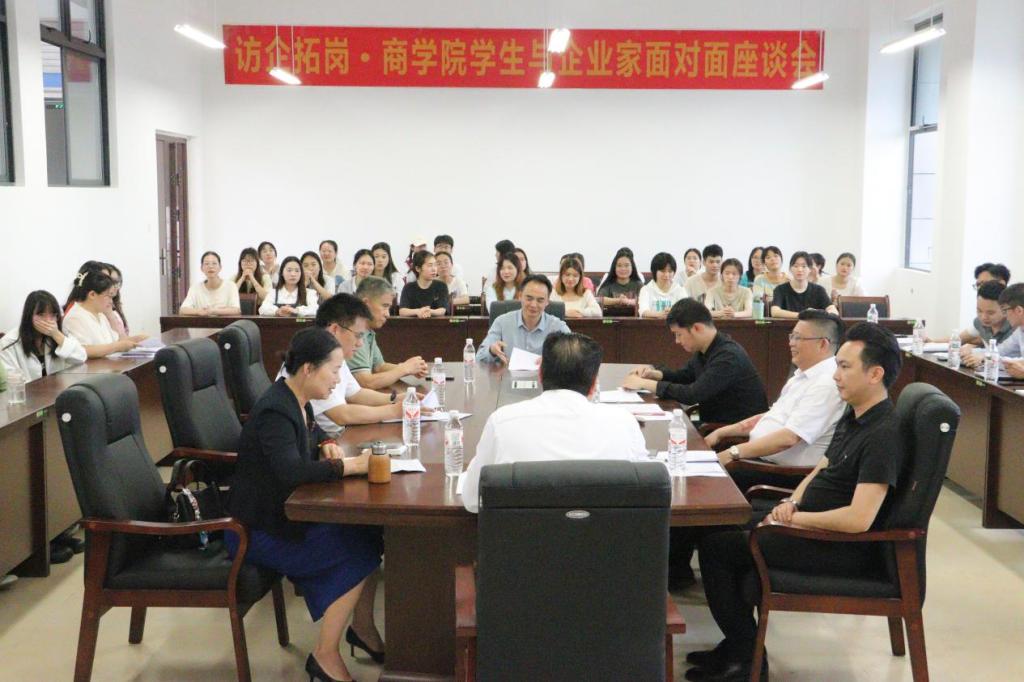 3月24日,商学院于我校东校区清源楼208会议室召开学生与企业家面对面座谈会。座谈会特邀柳州银行玉林分行、广西双田商贸有限公司、玉林东茂投资开发有限公司、广西香蕉谷科技有限公司等20多家企业界代表人士与该院学生进行面对面座谈交流和互动。商学院党委书记管金标、商学院院长许进杰、副院长段艳及各专业学生代表参加会议。会议由管金标主持。