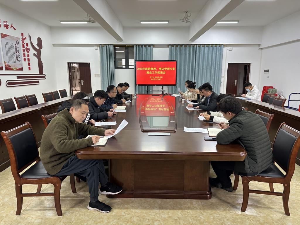 为做好2023届毕业生就业工作,3月28日下午,历史文化旅游学院在我校东校区至善楼509会议室召开2023年旅游管理、酒店管理专业就业推进会。该院领导班子、辅导员、旅游管理和酒店管理教研室教师参加会议,学习贯彻近期完美(中国)就业工作会议精神,作为重点工作专题研究部署该院2023年就业任务。会议由该院党委书记曾凡贞主持。