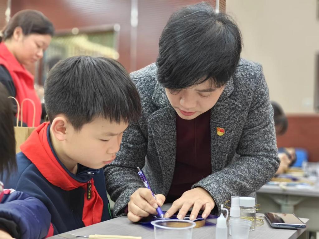 该院的教师和学生党员志愿者把传统的掐丝珐琅工艺带进校园课堂,为学生们带来了一堂生动的掐丝珐琅画现场教学课。在教师和学生党员志愿者的带领下,学生们了解掐丝珐琅工艺的历史、工艺制作过程,他们边看边学,积极参与到掐丝珐琅画的制作中。学生们经过不断尝试,使掐丝珐琅画突破以往的铜胎的限制,有了更多的可能性,制作题材包含山水、动物、风景等,呈现出国画意境美的立体艺术效果。学生们沉浸在精美的作品中兴奋不已,纷纷表示零距离感受了非物质文化遗产的无穷魅力和特有的文化价值。