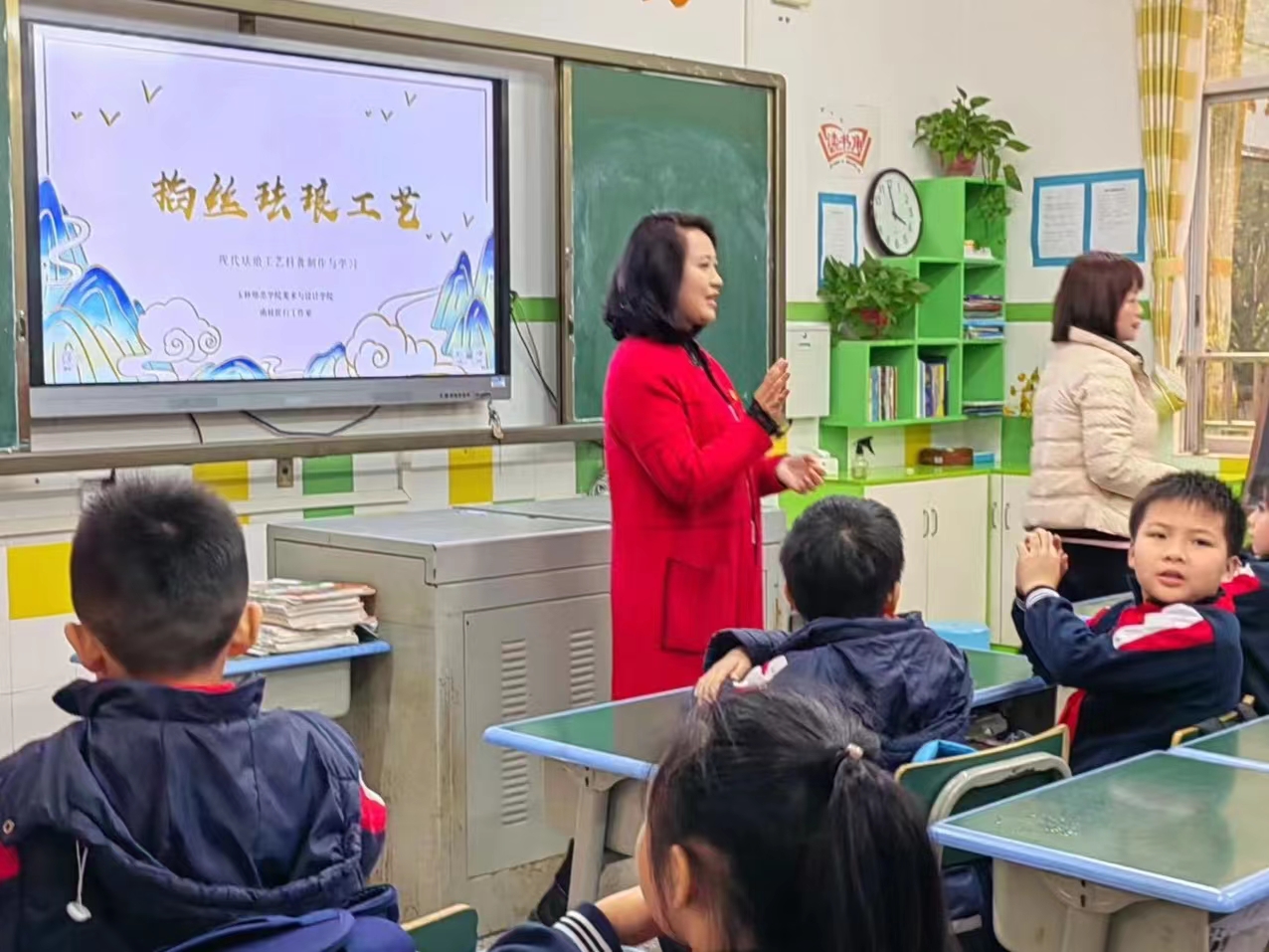 为深入贯彻党的二十大精神,进一步弘扬中华民族优秀传统文化,推进非物质文化遗产的传承和发展,3月29日下午,美术与设计学院党委书记黄培英、副院长邱冬梅、专职组织员带领学院“艺心向党”师生党员志愿者代表赴玉东小学开展“非遗进校园 美育润童心”党员志愿服务活动。