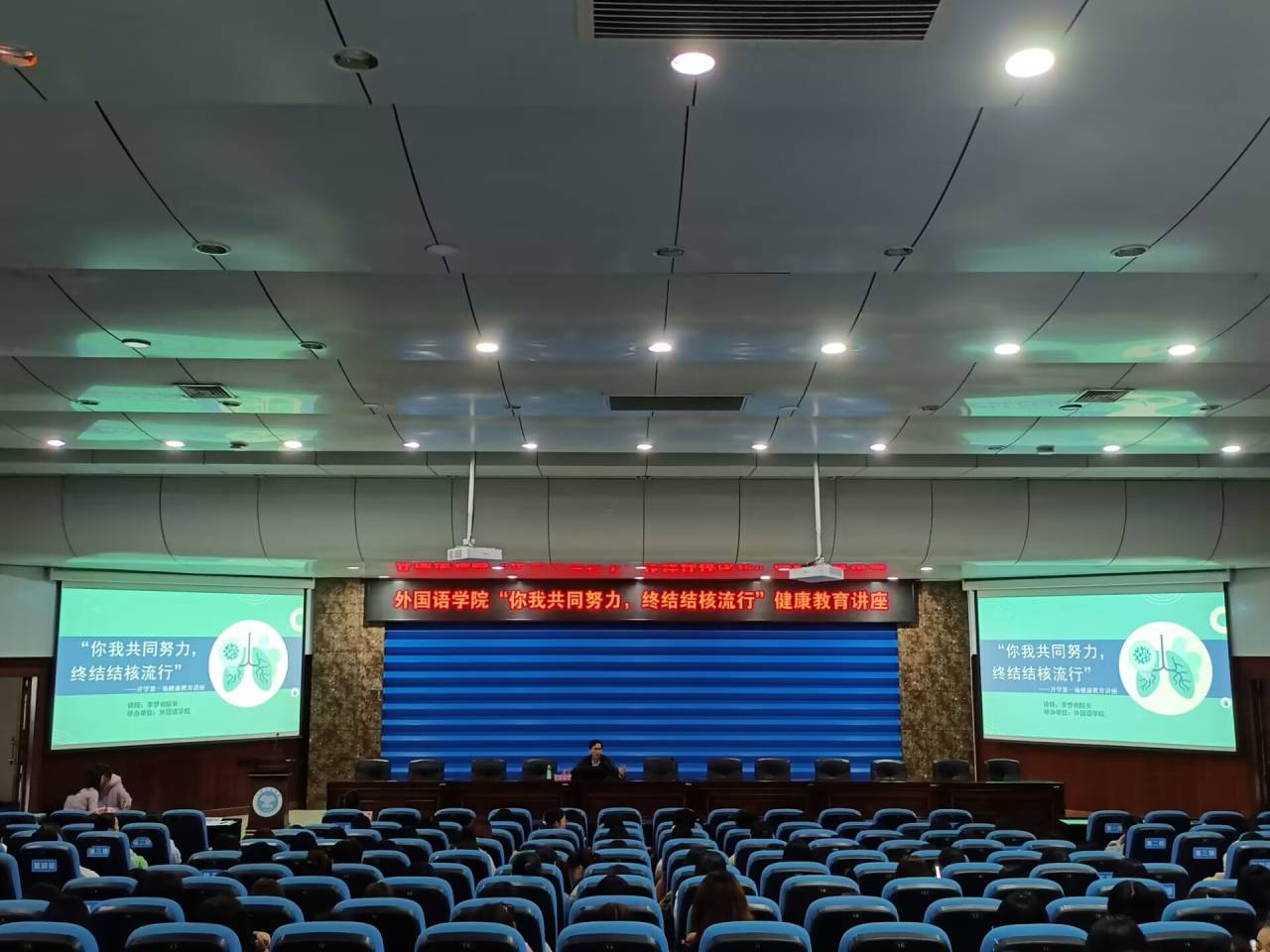讲座以“你我共同努力,终结结核流行”为主题,辅导员朱晓露主持。