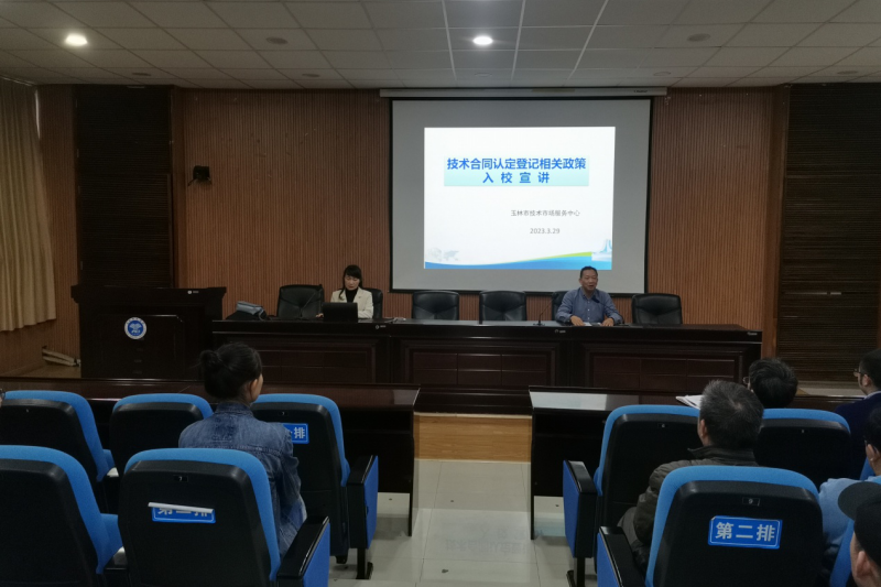为贯彻落实自治区科技厅《关于优化营商环境做好技术合同认定登记工作的通知》的精神,宣传技术合同认定各类优惠政策,强化我校技术合同认定登记规范化建设。3月29日上午,科研处在我校东校区知行楼302博士论坛举办“技术合同认定登记政策宣讲暨科技创新孵化中心服务推介会”。会议邀请玉林市技术市场服务中心长期从事技术合同登记相关工作的黎雯老师和玉林市中小企业科技创新孵化服务中心的庞子旺老师前来授课。科研处处长石维有主持讲座,我校教师和学生共50余人参加培训学习。