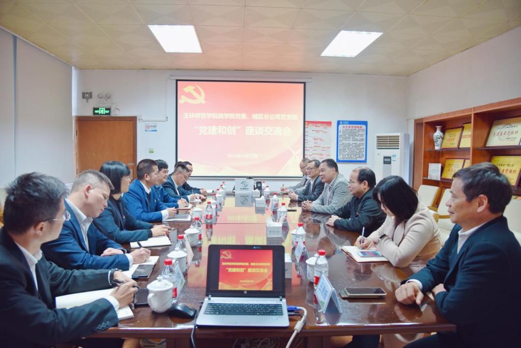 3月31日下午,商学院党委与中国移动城区分公司党支部开展“党建和创”共建交流会。该院党委书记管金标、党委副书记龙强、副院长姚静武等一行六人赴中国移动玉林城区分公司党团会议室共同参加交流会。双方参会人员就党建工作、如何更好地服务地方经济社会等方面展开交流。