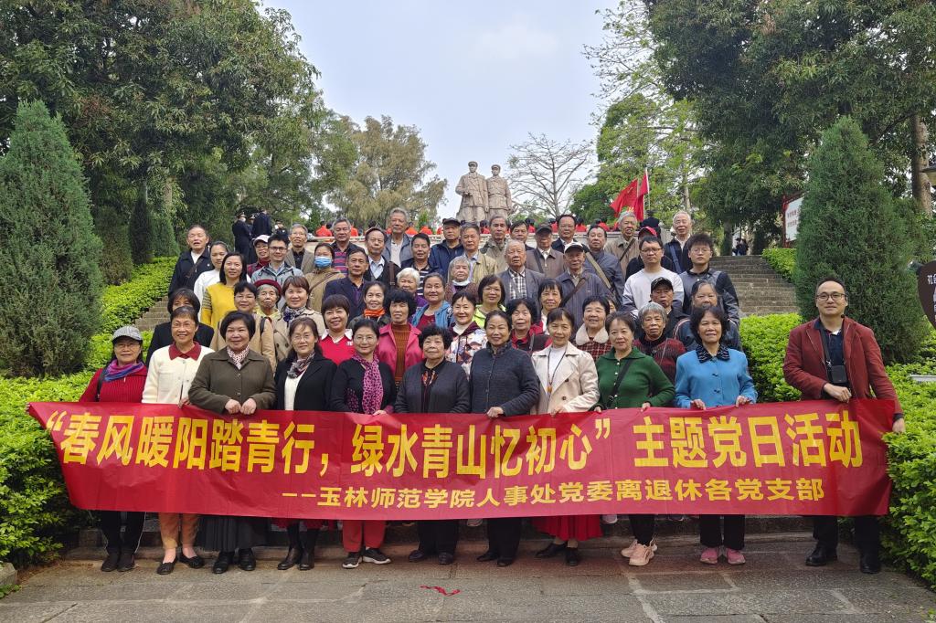 为贯彻落实党的二十大精神,铸牢中华民族共同体意识,营造各民族师生交往交流交融的良好校园文化氛围,增进各族师生对伟大祖国、中华民族、中华文化、中国共产党、中国特色社会主义的认同,增强人事处党委各党支部的凝聚力,4月7日上午,人事处党委组织全体党员及学生党员代表到北流市李明瑞俞作豫纪念馆、会仙河公园等地开展“民族团结我同行,各族师生一家亲”暨“春风暖阳踏青行,绿水青山忆初心”主题活动。