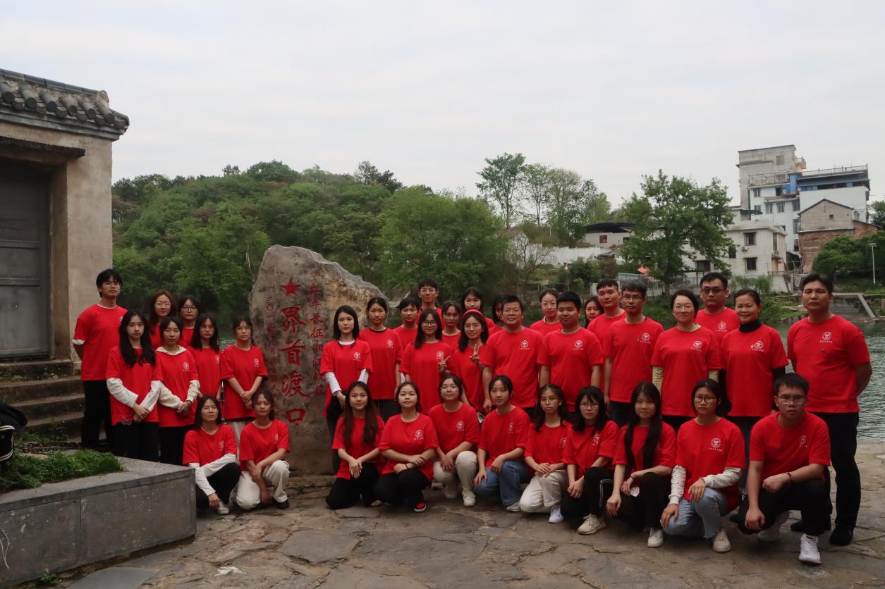 在红军长征湘江纪念馆,讲解员为师生团队讲解了红军长征在湘江的事迹,让同学们更深刻地领悟、感受革命先辈不怕牺牲、不怕困难的精神品质。怀着无限崇敬之情,全体师生在凭吊广场向湘江战役“红军魂”纪念雕塑敬献花篮,向革命烈士默哀并行三鞠躬礼,深切缅怀在湘江战役舍生忘死、英勇牺牲的红军先烈。师生们还参观了在新圩阻击战中的酒海井烈士碑,马克思主义学院党总支书记邓润生老师与梁煜老师现场为同学们讲述酒海井烈士碑的来源与历史意义,教导同学们要铭记英雄,不忘历史,学习革命先辈的优秀精神品质。参观界首渡江遗址公园、美国飞虎队桂林遗址公园等具有红色革命的纪念园与遗址时,一件件宝贵的革命文物,一张张生动的红军油画,一处处红军与敌人作战的模拟场面重现当年中国共产党人在湘江战役中的壮烈情景,让师生身临其境,沉浸其中。师生时而凝神倾听,时而驻足观看,深深为红军战士的精神所感动。