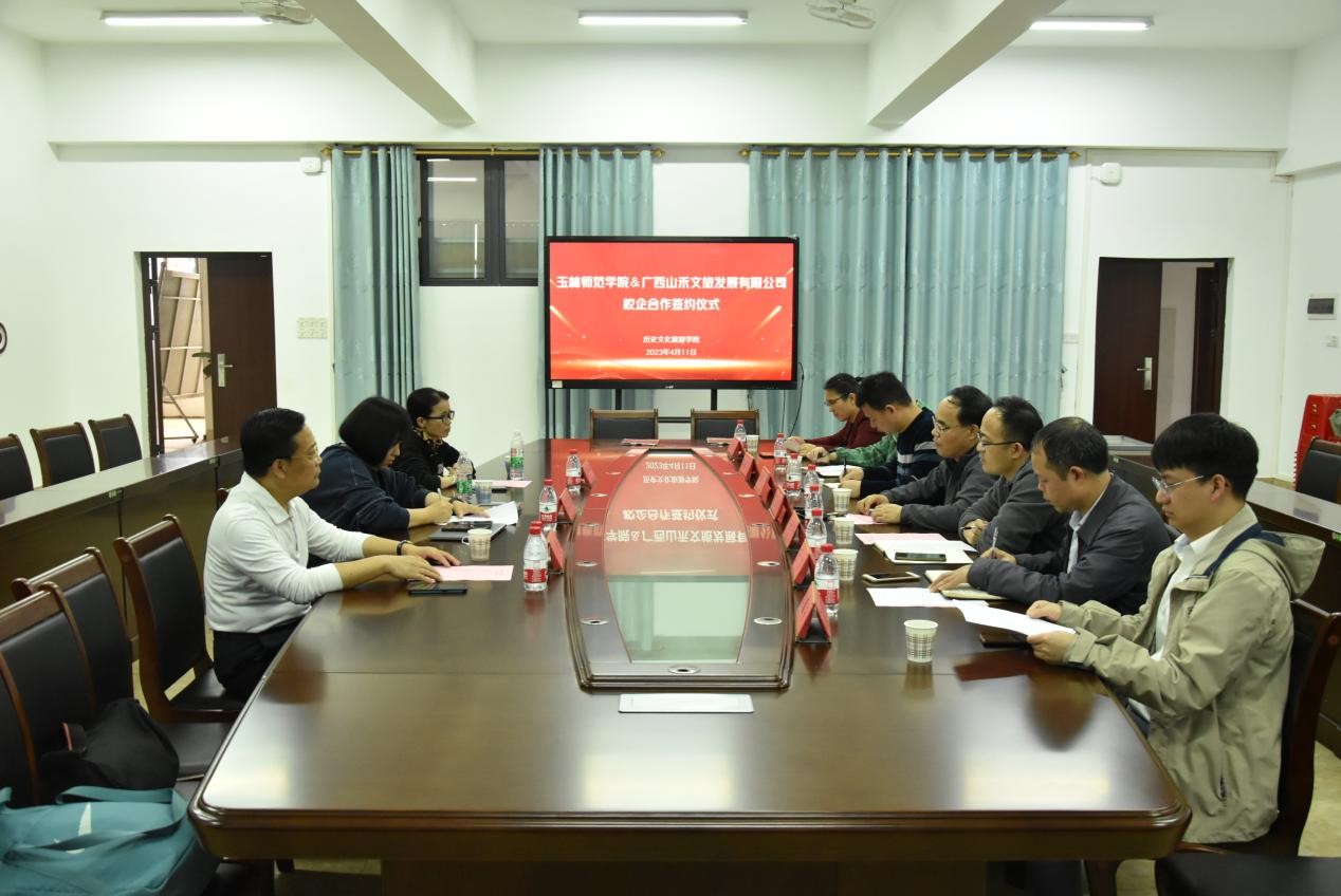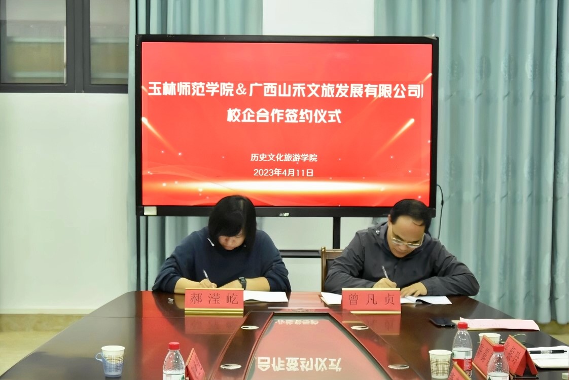 4月11日下午,历史文化旅游学院与广西山禾文旅发展有限公司在我校东校区至善楼509会议室举行校企合作签约暨工作室揭牌仪式,该院领导班子及旅游管理专业专任教师参与签约仪式,广西山禾文旅发展有限公司总经理郝滢屹及其国家金牌导游广西联合工作室成员出席,仪式由该院副院长唐彰元主持。