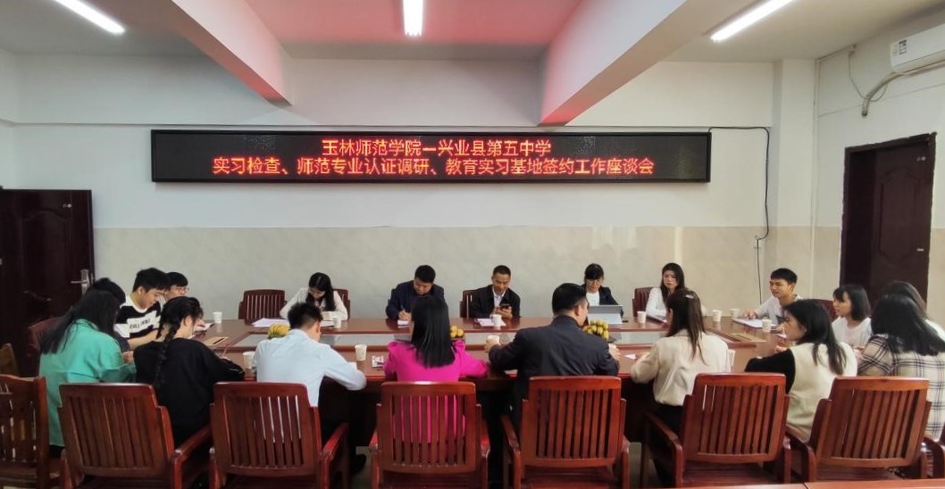 4月13日,数学与统计学院党委书记庞伟、副院长杨京开等一行5人赴兴业县第五中学开展检查学生实习工作、师范专业认证调研、教育实习基地签约工作座谈会。兴业县第五中学领导热情接待该院实习检查小组。