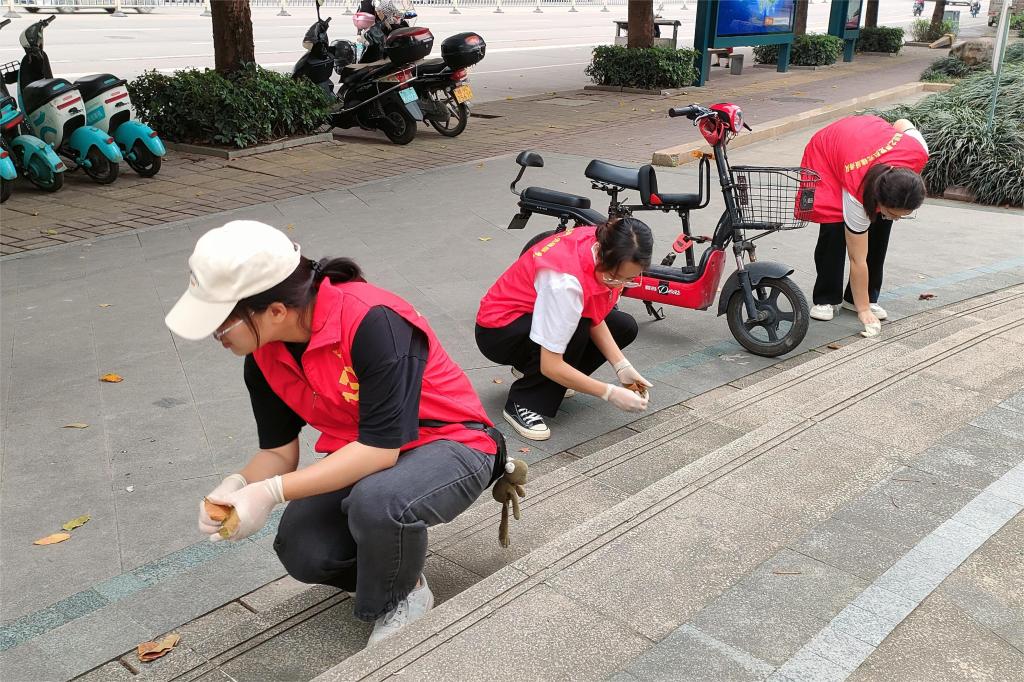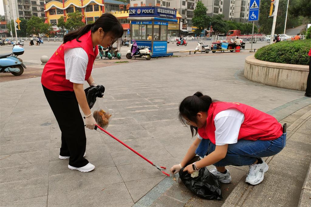 做文明先锋者,为创城添光彩。政法学院青年志愿者以文明城市创建工作为内容,拓展学院劳动教育实践为目的,围绕南兴广场、玉林市城南公园周边开展清洁志愿服务活动。