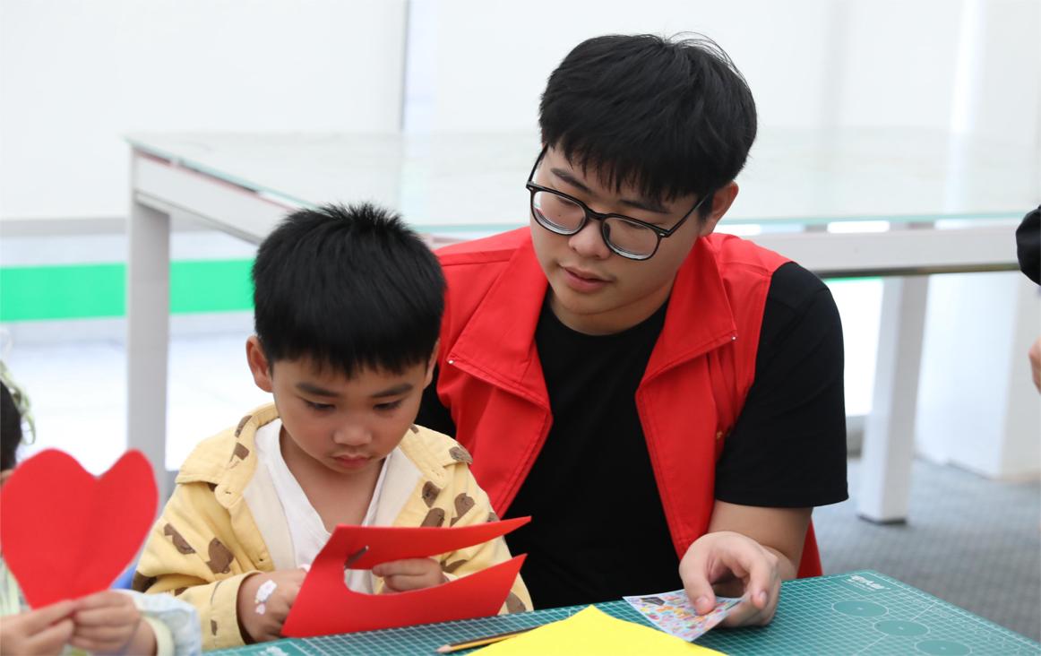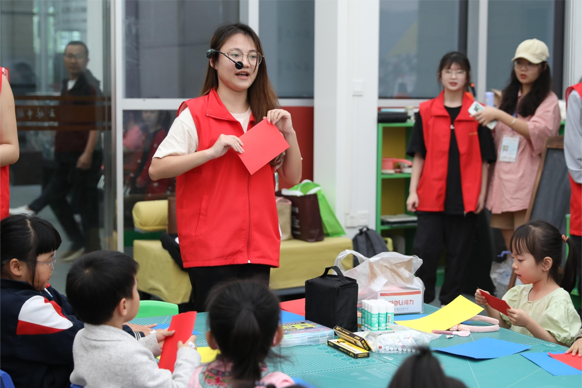 在手工剪纸环节中,志愿者边做边示范,一步步引导小朋友裁剪出小鸟的形状,其他志愿者则到小朋友身边进行手把手指导,锻炼小朋友们的动手能力。小朋友们在课堂上接受传统文化的熏陶,加深对传统文化的认同和喜爱。