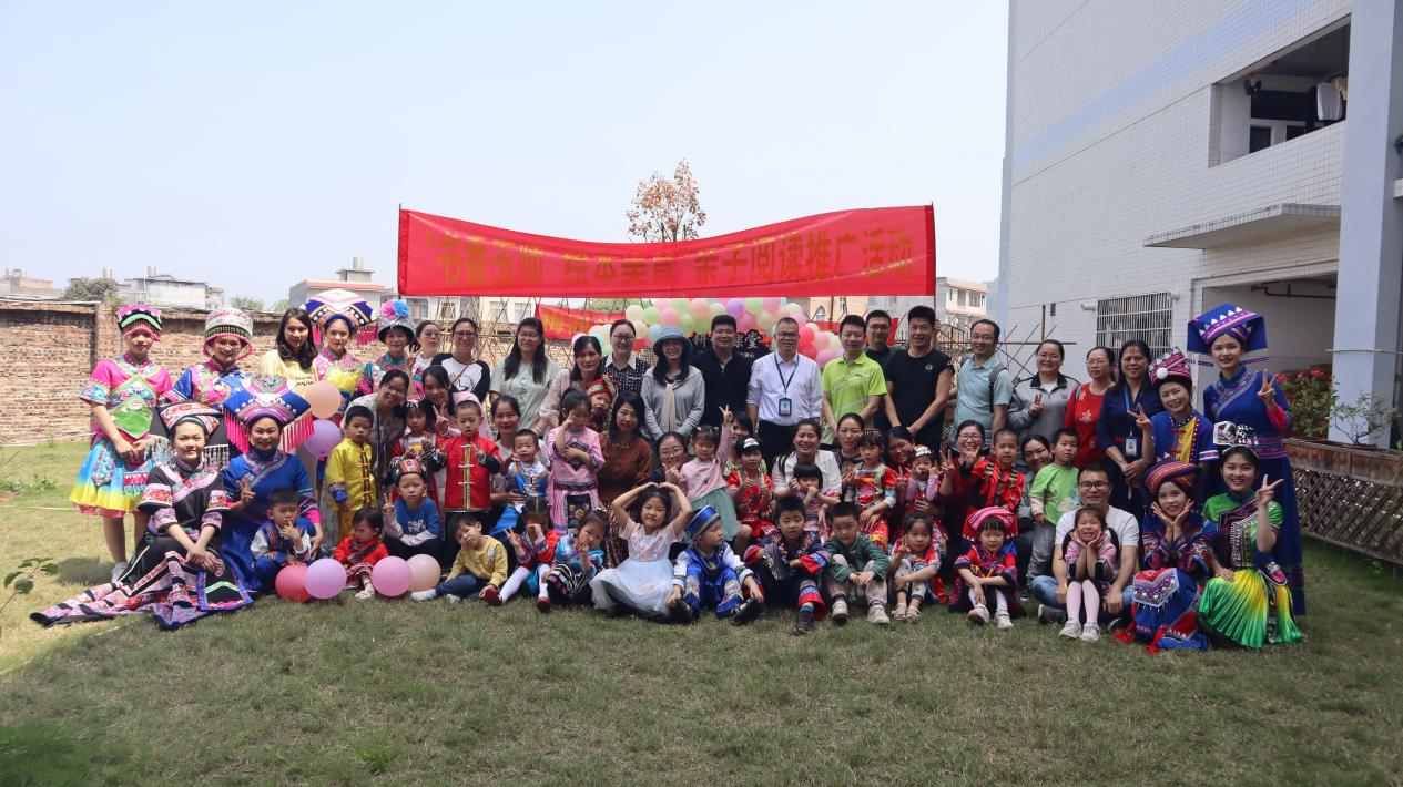 当日的梅园社区十分热闹,孩子们和家长身穿艳丽的壮族传统服饰。活动为小读者们讲读绘本《一起来过三月三》的故事,与小朋友及家长进行亲子问答互动,对壮族传统节日的来源、节日习俗、节日意义等内容进行讲述,并现场展示与壮族“三月三”有关的图片和实物,让孩子们更直观地了解传统文化和习俗。