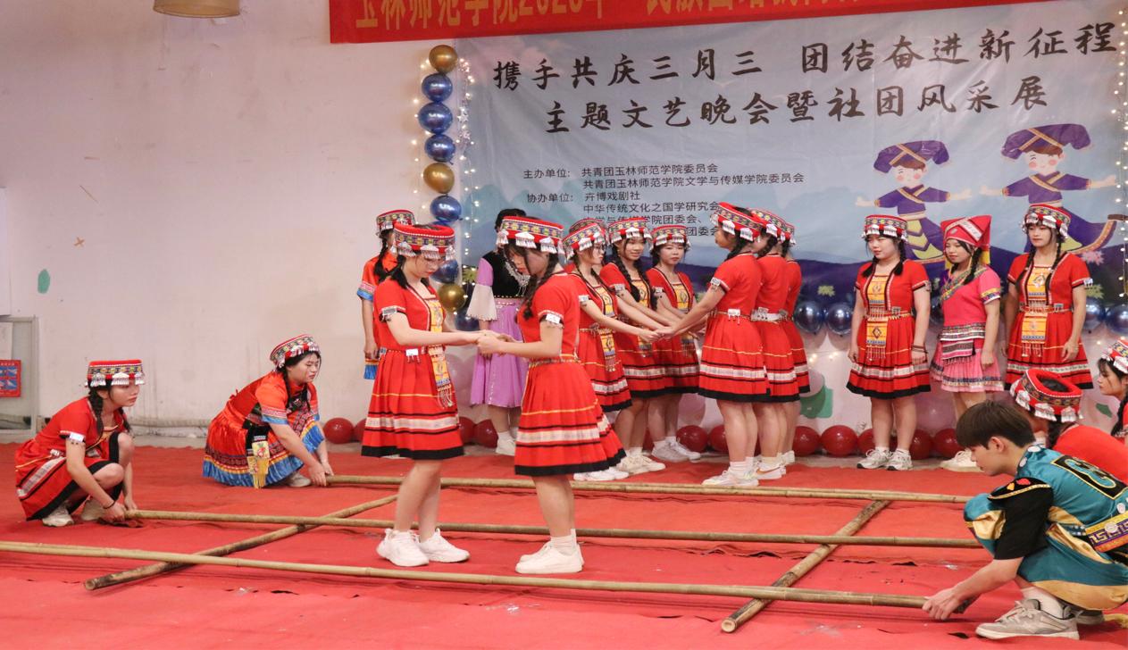 为贯彻落实党的二十大精神,继承和弘扬中华优秀传统文化,铸牢中华民族共同体意识,营造浓厚的壮族“三月三”节日氛围。我校于4月15日晚在东校区尚文阁食堂二楼举办“携手共庆三月三,团结奋进新征程”主题文艺晚会暨社团风采展。我校团委书记范良辰,团委副书记董积有以及文学与传媒学院党委副书记梁丹,团委书记,辅导员出席本次晚会。本次活动由完美(中国)团委、文学与传媒学院主办,卉博戏剧社、中华传统文化之国学研究会、物理与电信工程学院文工团承办。我校部分社团及各院学生代表参加。