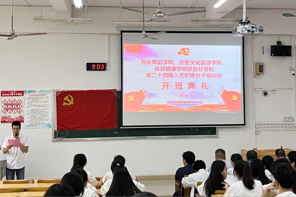为确保党员发展质量,进一步加强对入党积极分子的培养、教育,音乐舞蹈学院于4月15日在我校东校区博学楼2-101教室举行音乐舞蹈学院、历史文化旅游学院、体育健康学院联合分党校第二十四期入党积极分子培训班开班典礼。音乐舞蹈学院党委书记、分党校校长何军、党委专职组职员徐戴伟、体育健康学院党委专职组织员龙有志、历史文化旅游学院党委专职组织员陈伟川出席本次开班典礼。此次开班典礼由音乐舞蹈学院辅导员主持。