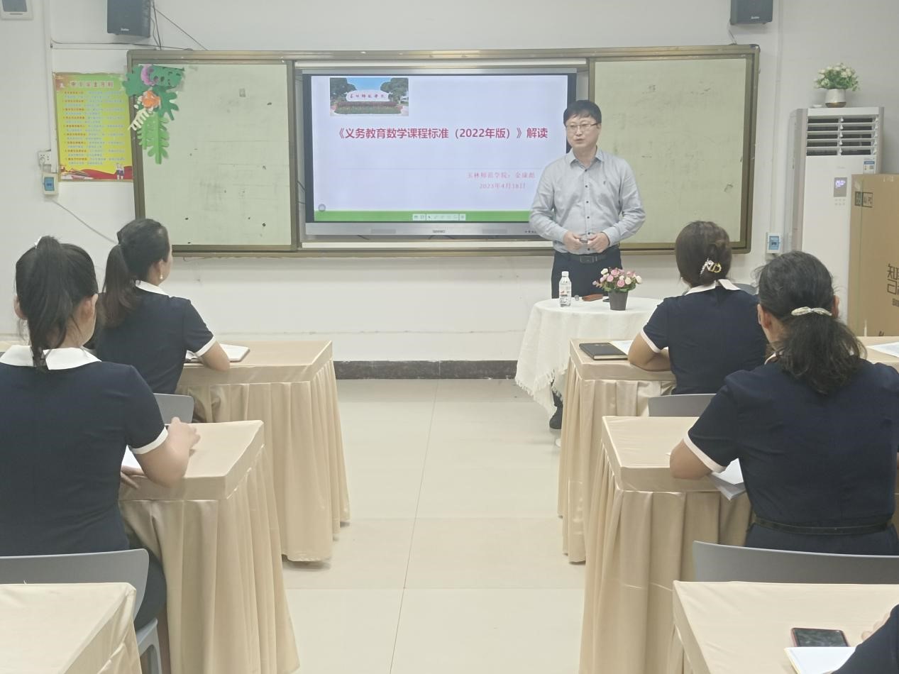 4月18日下午,教育科学学院副院长金康彪为大芦小学全体数学教师作专题讲座。
