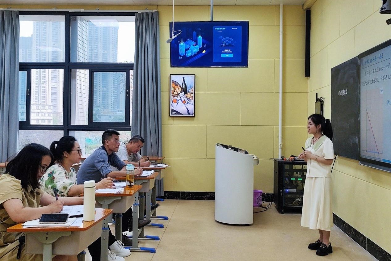 本次复赛以模拟上课和板书的形式进行,选手自行选择知识点进行讲解,时间为10-15分钟。参赛人员分为初中组和高中组,讲课过程中,选手通过数学事例互动式拉近“师生”距离,以精炼的表达使得课堂更加引人入胜。赛场上,选手各显特色与风格,体现出他们对教学内容的理解,对教学目标的把握,对多媒体的应用,以及对提高教学效果的思考。最后,评委老师围绕上课、板书设计、教态等方面对每位选手的表现进行评分并点评,并鼓励他们在下次的大赛中争取更大的进步。