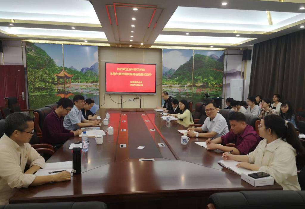 为更好的了解实习生的实习情况和加强实习工作管理,提高实习质量,4月17日至19日,生物与制药学院副院长贝永建一行前往玉林市第一中学、藤县实验中学、平南大安高级中学、容县杨梅中学观摩实习生授课情况,开展教育实习的听课、评课等中期检查活动。